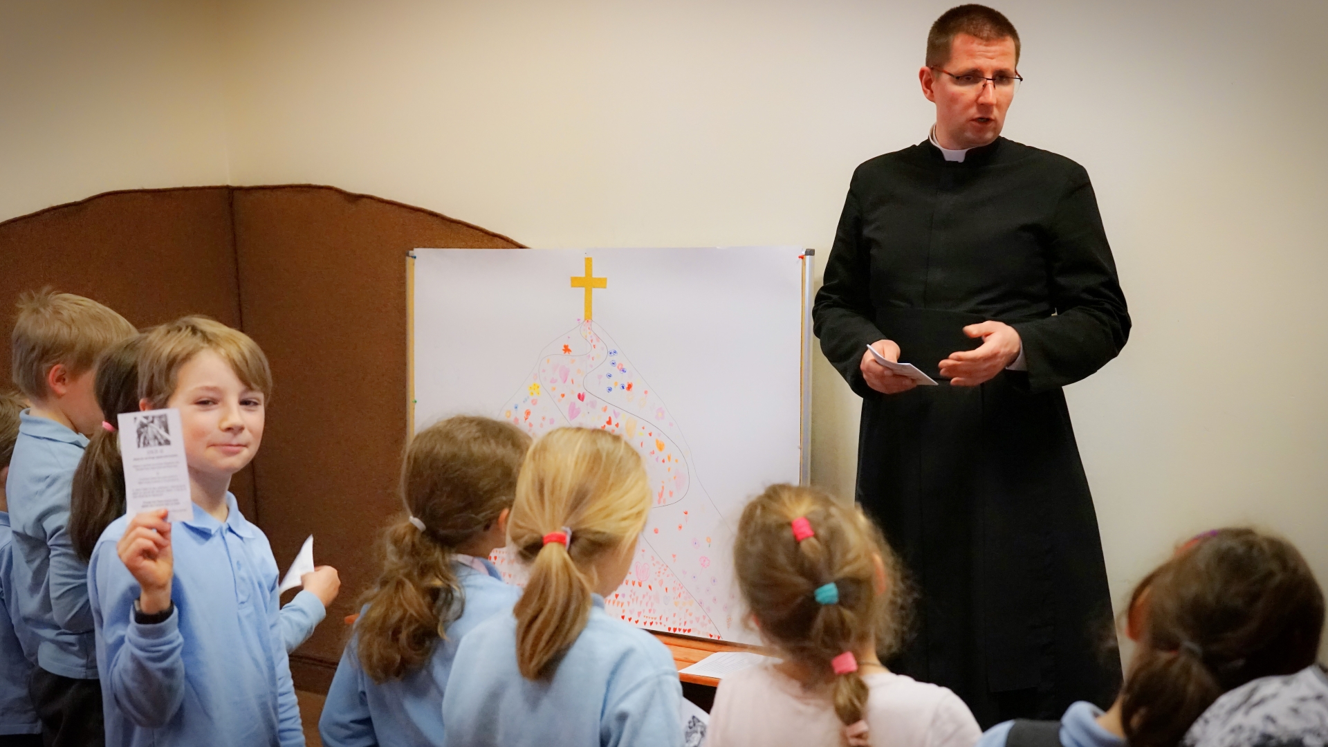 Podczas rekolekcji wielkopostnych ks. Jakub podsumował zadanie wielkopostne, tłumacząc, że serca ofiarowane przez dzieci są symbolem współczucia, jakiego nie okazali Panu Jezusowi grzesznicy. Przypomniał, że aby wspiąć się na górę, do krzyża, potrzebny jest wysiłek. Mówił także o miłości, z jaką Pan Jezus dźwigał swój krzyż podczas Drogi Krzyżowej.